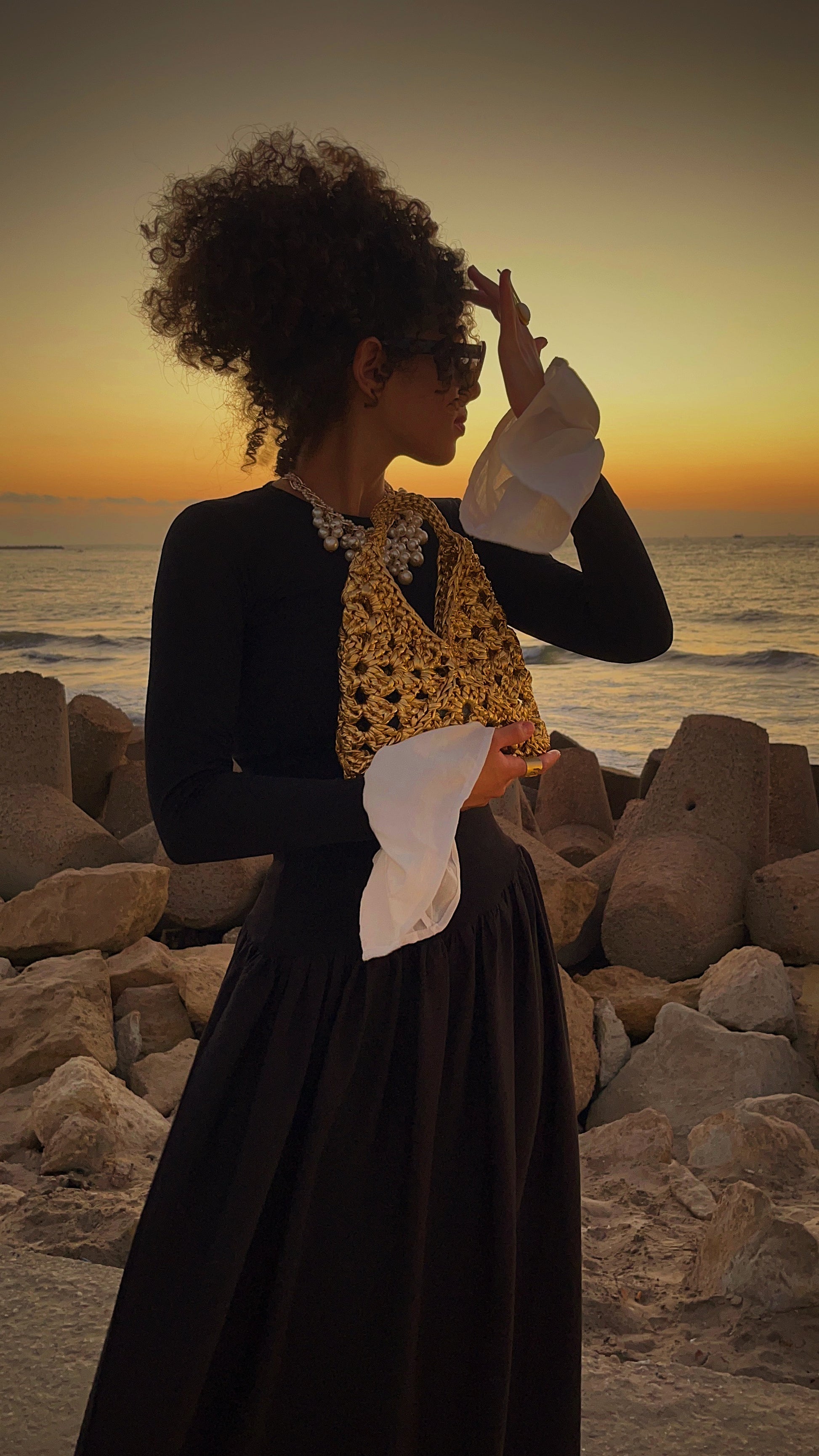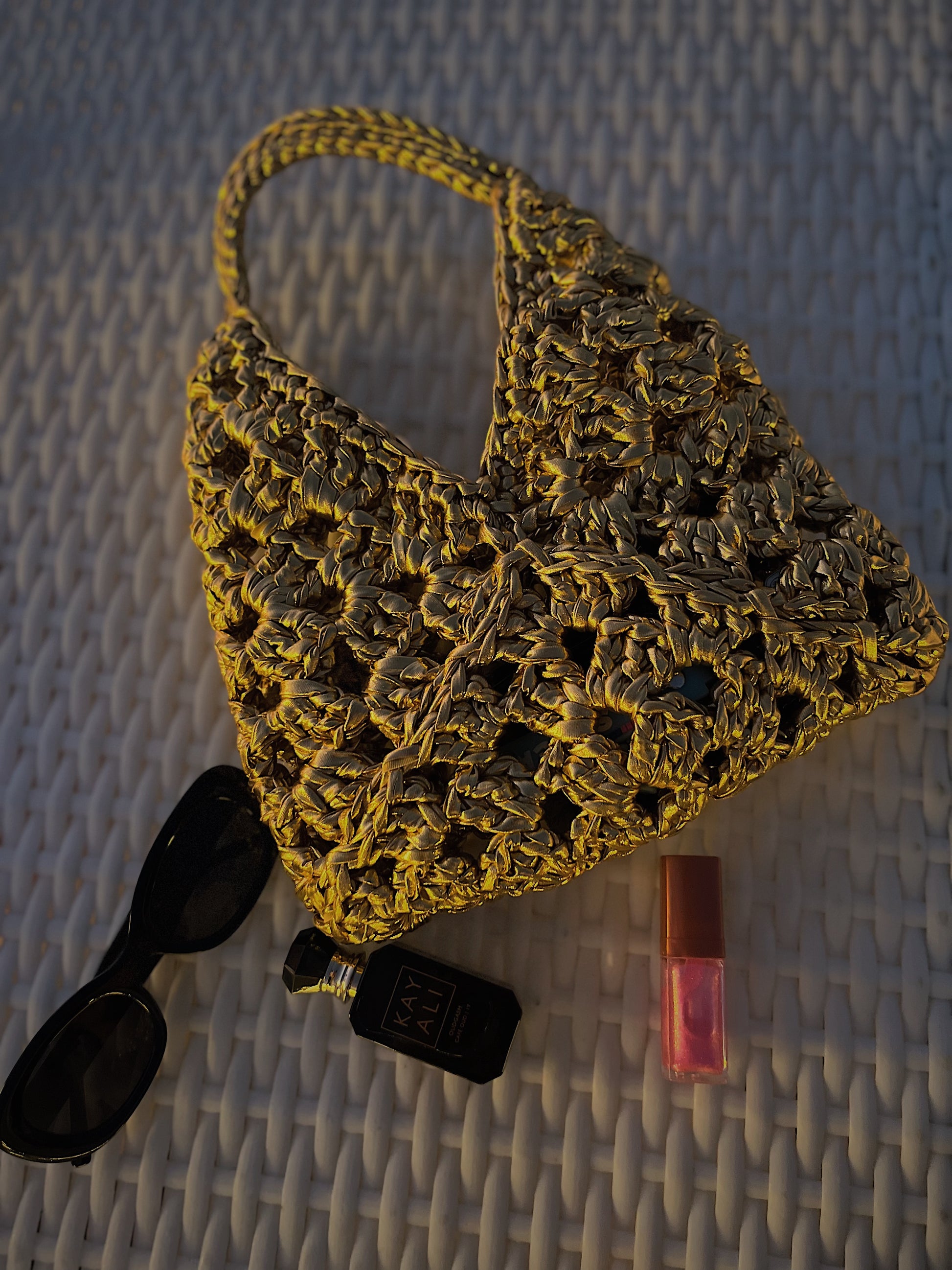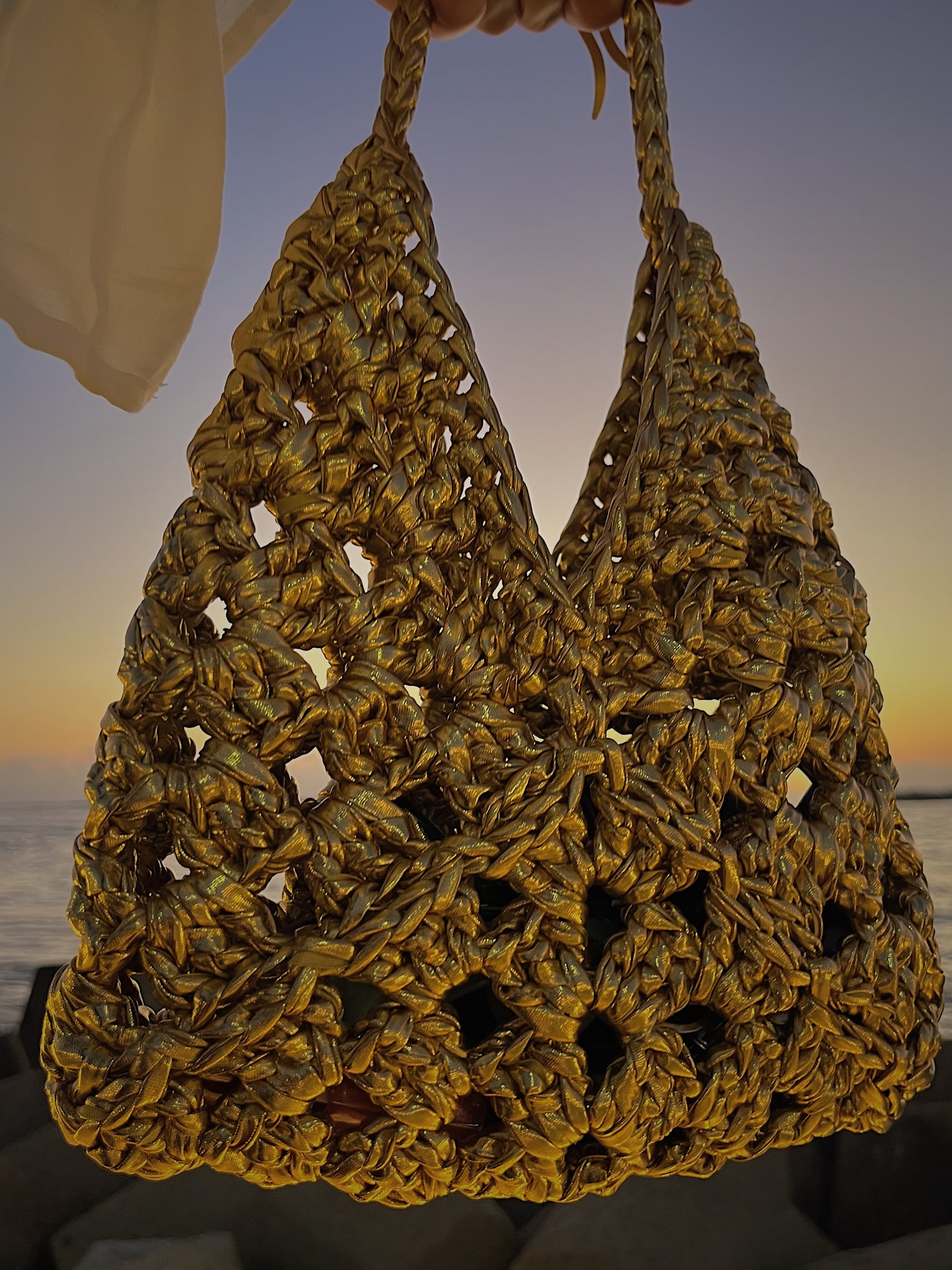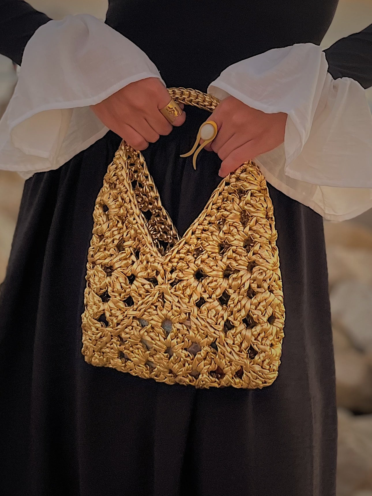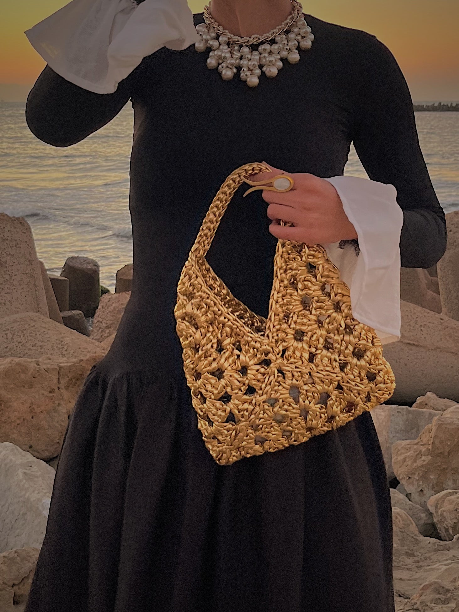 Turn every outing into a statement with our Golden Crochet Statement Clutch✨. Handcrafted with care, this bag combines the timeless art of crochet with a modern, luxurious metallic finish. Lightweight yet structured, it’s the perfect accessory for sunset dinners, seaside strolls, and elegant nights out.